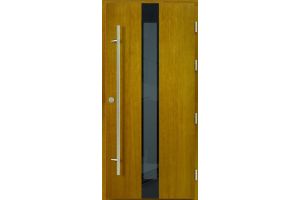 Drzwi Favorit wykonane z drewna dębowego, grubość skrzydła 78mm w systemie przylgowym, rama skrzydła z drewna mahoń-meranti konstrukcja wewnętrzna skrzydła to kratownica drewniana wypełniona pianką o grubości 54mm, rama wzmocniona profilem stalowym "C" 40x20mm, poszycie zewnętrzne skrzydła to wodoodporne sklejki mahoń-maranti o grubości 12mm, wręg antywyważeniowy, zamek listwowy klasy C, ościeżnica o wymiarze 125x60mm z profilem AL z wkładką termiczną, malowanie pięciopowłokowe, próg aluminiowy z wkładką termiczną (tzw. ciepły).